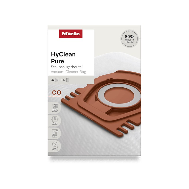 Die HyClean Pure Staubsaugerbeutel sind perfekt abgestimmt und so designt, dass sie höchste Leistung und Effizienz bieten. Das automatische Verschlusssystem schliesst den Staub sicher ein, ohne mit ihm Berührung zu kommen. Mit der Neuen patentierten ComfortFit-Technologie bieten sie eine noch einfachere Handhabung und sorgen für maximale Hygiene. Darüber hinaus wird der Staubsauger vor mögliche Beschädigungen und Verschmutzungen geschützt.